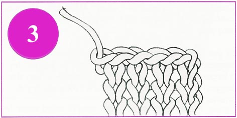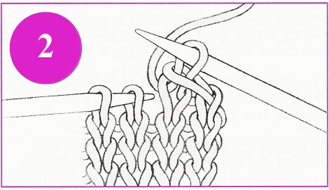 بسن الابره اليسري كرري خدي الغرزه 2 علي سن الابره اليسري وعديها من فوق الغرزه 3 ومن علي سن الابره اليمني ثم اسقطيها من علي سن الابره اليسري