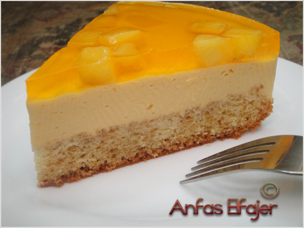 يخلط الجبن الكاسات مع باقي مقدار الكريمة ويصب فوق الصينية