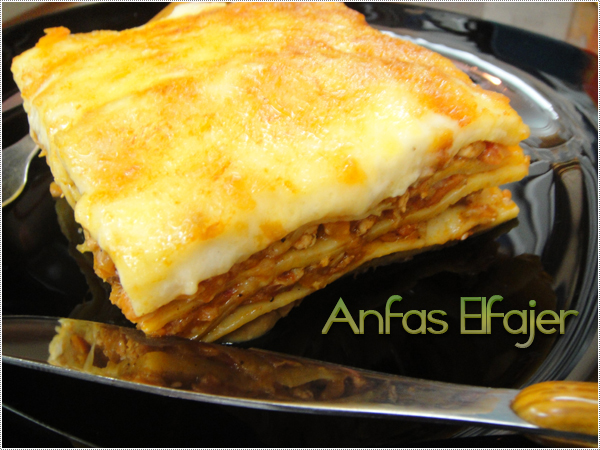 1 . تسلق شرائح اللازانيا في ماء غزير مغلي ومملح مع نقطة زيت حتى تلين قليلا ثم تخرج من الماء وتشطف بماء بارد وتترك جانبا متباعدة عن بعضها