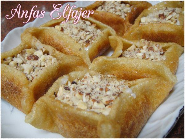 تحشى بحشوة القشطة ويرش الوجه بالمكسرات المجروشة وتقدم