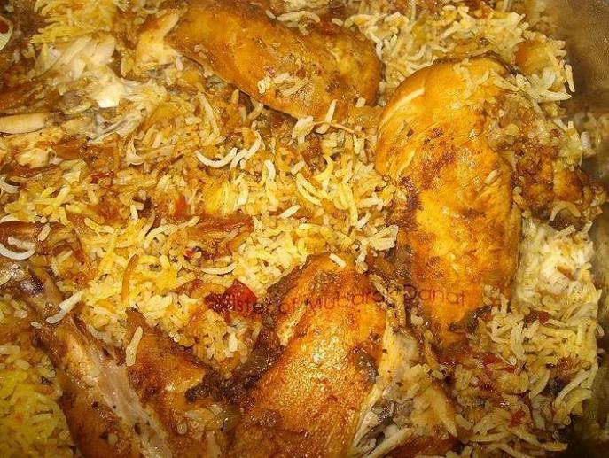 يحمس البصل مع الزيت والثوم والطماط لين يتحمر ثم يوضع الدجاج