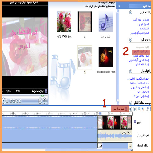نرجه نضع أظهار لوح العمل رقم 1 ثم نختار عرض تأثيرات الفديو رقم 2