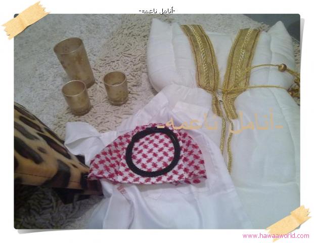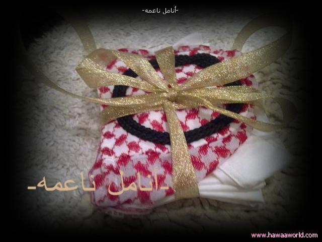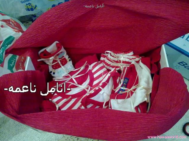 هذي البدله لفيتها رول وربطتها بشرايط داخل الكرتون