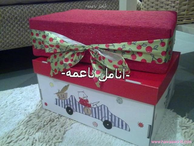 علبه كرتون + شرايط + فريم صوره + ملابس + قش