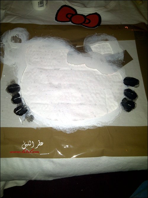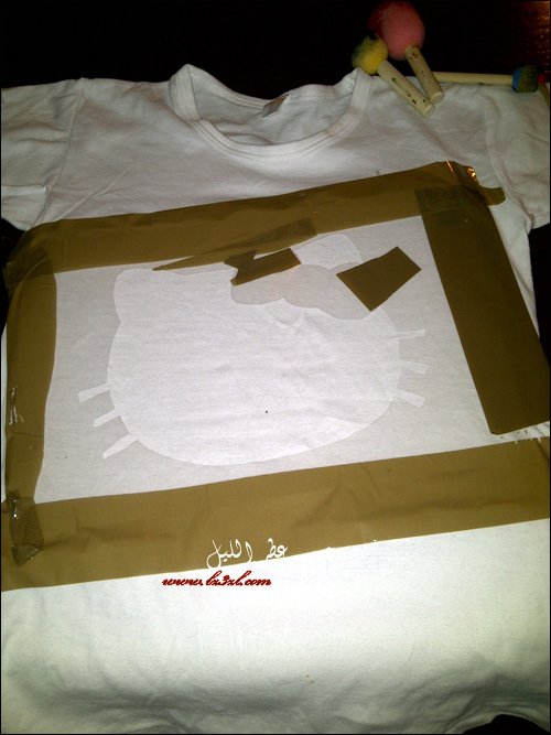 1- تطبيق الرسم على التي شيرت بواسطة قلم رصاص او طبشور خاص بالاقمشة ثم تحديد الرسم بواسطة الفرشاة الرفيعة وتركها حتى تجف وبعدها يمكن تلوينها