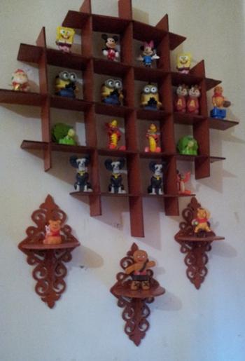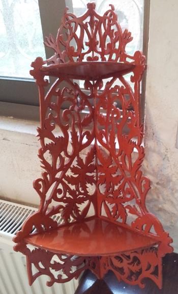 هذه سله صغيره لوضع الشوكلاته او زهور او اي شيء اخر عملتها من طبقتين من الفوم هذه استاندات للحائط هنا مع رف بسيط هذا رف مع زخرفه ..عيبه الوحيد انه لا يتحمل الثقل الزائد للموضوع بقيه