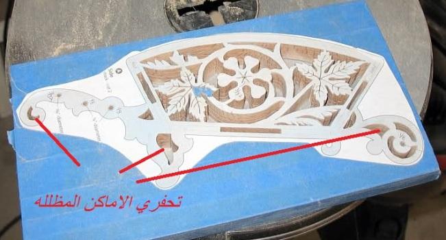 الخطوه الثانيه هي تضليل الاماكن التي يجب ان تقص او تفرغ ثم وضع الباترون على الفوم ولصقه بالتيب الشفاف :