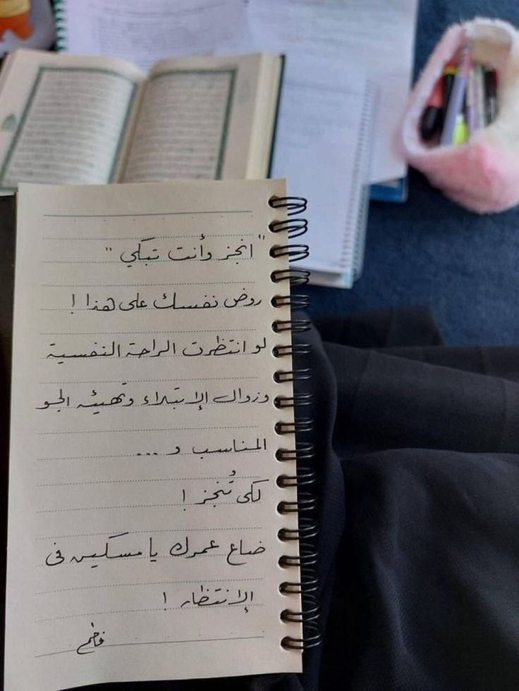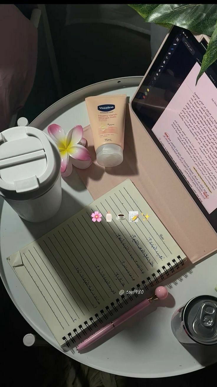 "رتبي غرفتك عشان نفسيتك، وحاولي قدر المستطاع ماتراكمين🤍، انتبهي تخلين سريرك محل المذاكرة لأنك فجأة بتقررين تاخذين غفوة حتى لو نايمة زين 😁🤍🤍