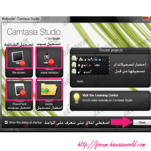 ومن ثم ستظهر لك مثل هذه النافذة في كل مرة ستفتحين فيها البرنامج
