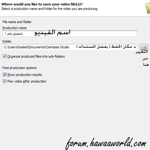 اما مكان البرنامج والذي ستذهب اليه كل الفيديوهات والتسجيلات سيكون بملف البرنامج الموجود بالمستندات