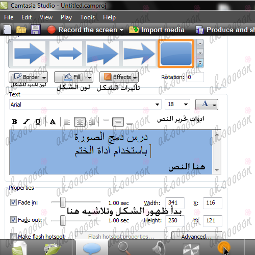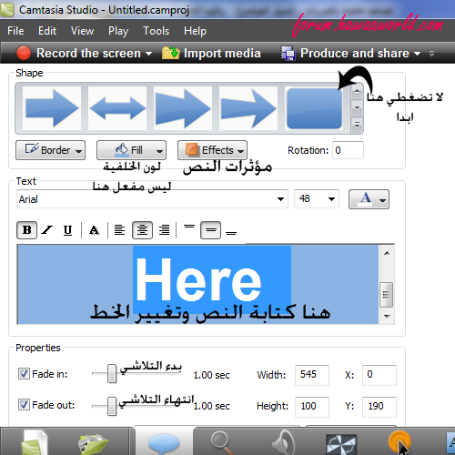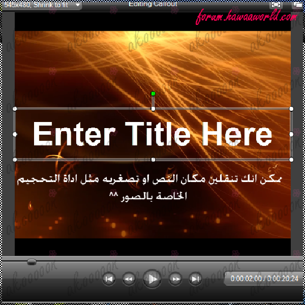 ايضا من خلال نافذة تشغيل الفيديو تستطعين التحكم بمكان النص