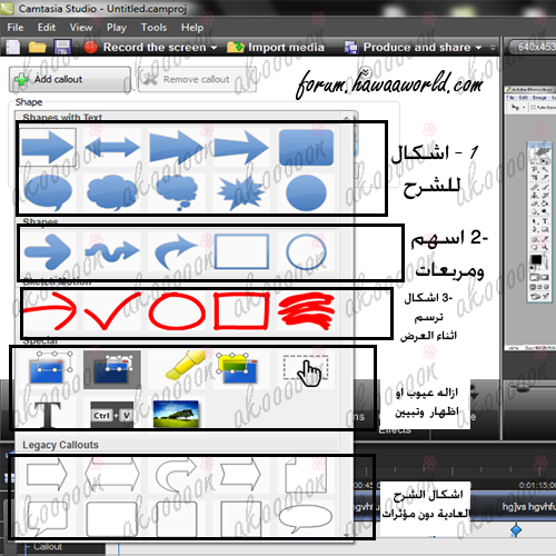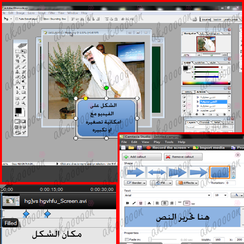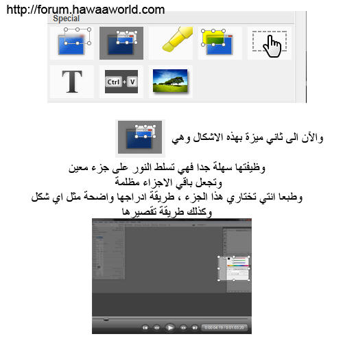 الصورة اصلا مكونة من 3 اجزاء لمكان الشكل : مكانه بشريط الوقت ، مكانه على الفيديو ، تحرير الشكل