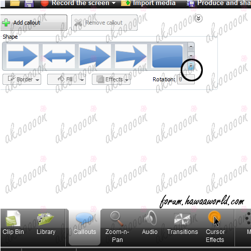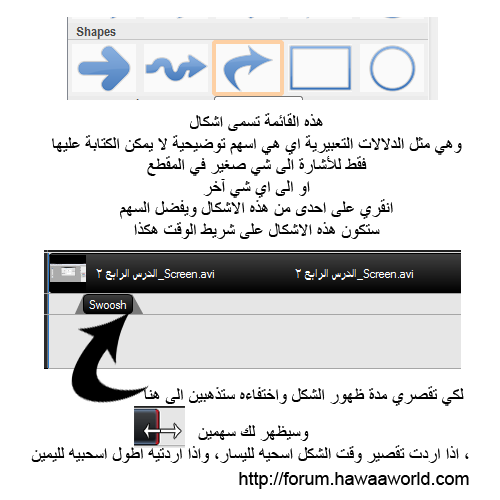 وطبعا الشكل راح يكون موجود على شريط الوقت ممكن انك تسحبينه لاي لقطة
