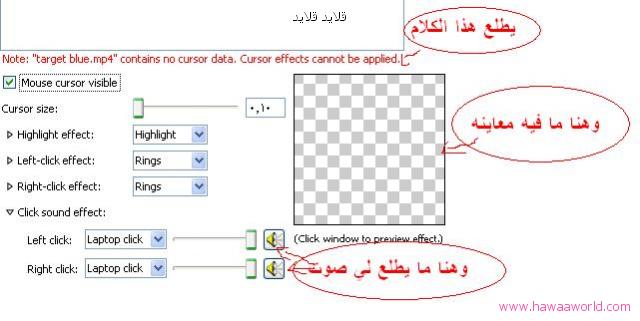 ملاحظة : التسجيل الي تعملي عليه لازم يكون طبعا فيه ماوس يعني يكون موجود بالتسجيل شكل الماوس + مايكون فيه تأثيرات من قبل ^^"