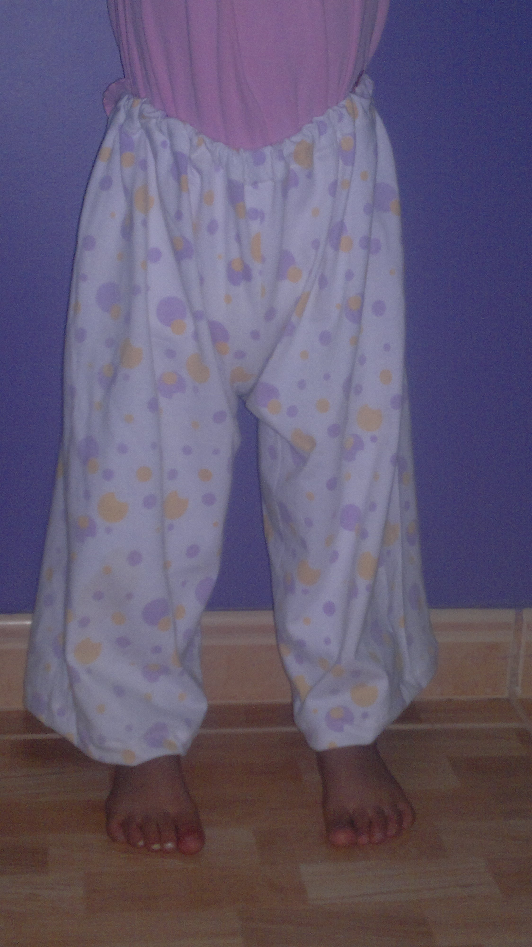 ماحبيت يعدي الدرس من غير تطبيق على إنه ماعندي بلوزة اطبق عليها فجبت بنطلون بنتي عمرها اثنا عشر سنة وصغرته على مقاس بنتي اللي عمرها سنتين بس طلع كبير شوي .ايش رايك؟