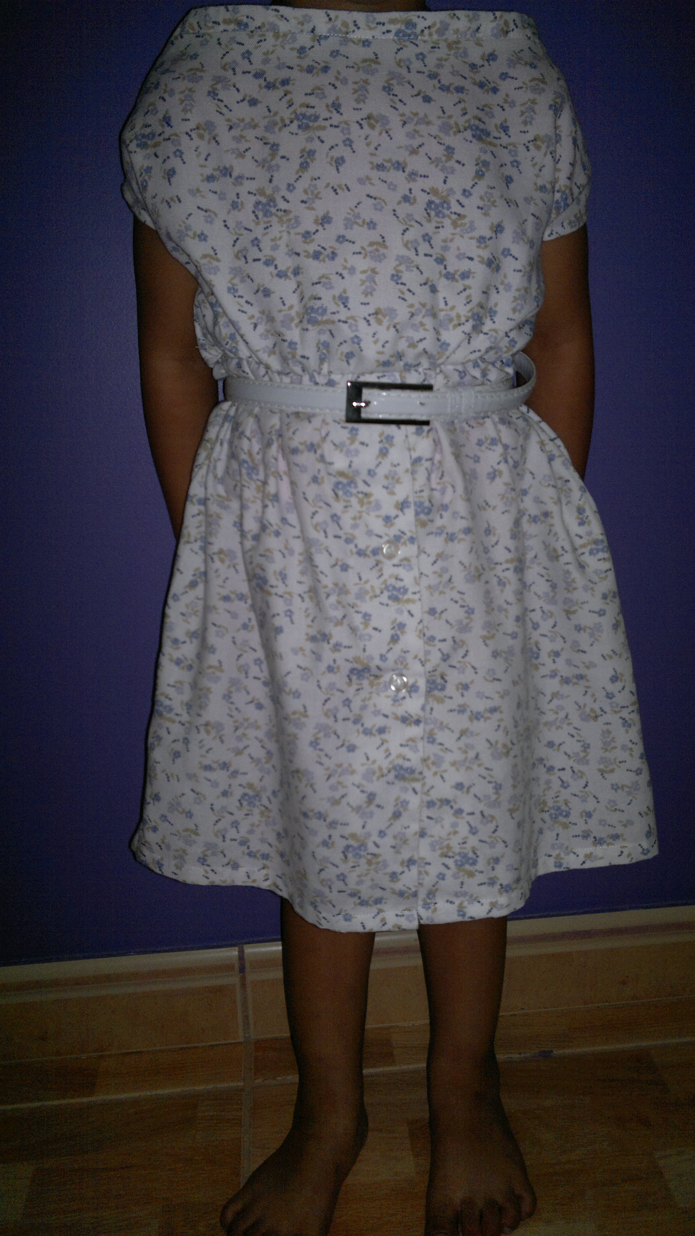 وهذا تطبيقي كان عندي بلوزة لي ومن طرف الكم عملت الرقبة و الزراير عملتها من قدام للفستان قولي لي رايك؟