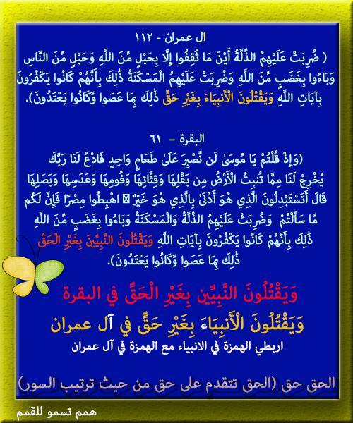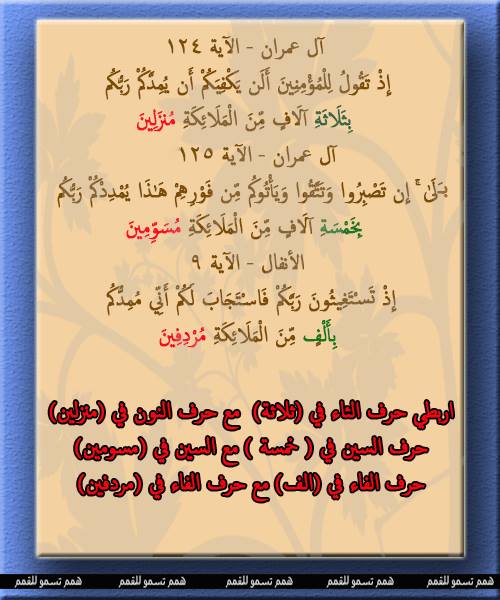 اختبار في سورة التوبة 1- 61 اكملي الأيات التالية (كيف وإن يظهروا عليكم لا يرقبوا فيكم ..... بما تعملون) (لقد نصركم الله في مواطن كثيرة... يؤفكون) (إلا تنصروه فقد نصره الله... يترددون) (ومنهم من يلمزك في الصدقات....أليم) اختاري الاجابة الصحيحة: 1- تخذوا أحبارهم ورهبانهم أربابا من دون الله والمسيح ابن مريم وما أمروا إلا ليعبدوا إلها واحدا لا إله إلا هو ....(سبحانه وتعالى - تعالى - سبحانه) عما ..... (يصفون - يشركون) 2- إلا تنفروا يعذبكم عذابا ... (أليما- شديدا - عظيما ) ويستبدل قوما غيركم ولا .... (تضروه - تضرونه) شيئا والله على كل شيء قدير بالتوفيق..اختبار في سورة التوبة 1- 61 اكملي الأيات التالية (كيف وإن يظهروا عليكم لا يرقبوا فيكم ........