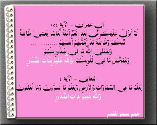 الحمدلله اتذكرت في هذي اللحظه فضل ربي عليه في كثير مواقف ربي يسر لي وطلعت من السلبيه على طول ,,وان هذا الأمر خير لي ورجعت شفت الموضوع بايجابيه( عسى ان تكرهوا شيئا وهو خير لكم )..وتذكرت كثير مواقف طاوعت فيها ابليس واتعبت نفسيتي بالبكاء والتفكير المحبط :unhappy:..صعب ان تكوني محاطه بأناس فيهم من السلبيه (الله المستعان) (والمصيبه لو اخذتي من صفاتهم دون ان تشعري). وهذا ماينفي خلقهم الطيب وتعاملهم الحسن..لكن مافي انسان كامل..الكمال لله وحده..