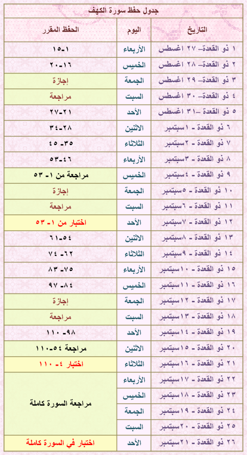 الله يسعدها ويهنيها على وضعها خطة الجداول