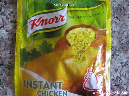 - ملعقة صغيرة من بودرة مرق الدجاج (بامكانك استبداله بالملح فقط) .