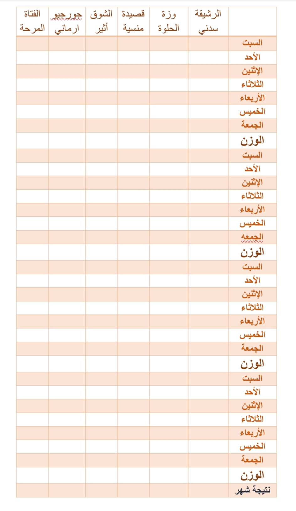 نعمل تحدي لمدة شهر وبالجدول نحدد بشكل يومي النقاط..