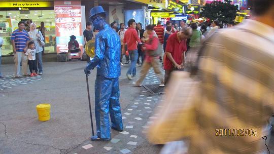 وتمشينا بشارع العرب وفيه شي لفت انتباهي في هالشارع وهو هالحركة رجال واقف كانه مجسم مايتحرك الا لما يدفعله فلوس ويصورون معه الناس يعني شحاذه مؤدبه