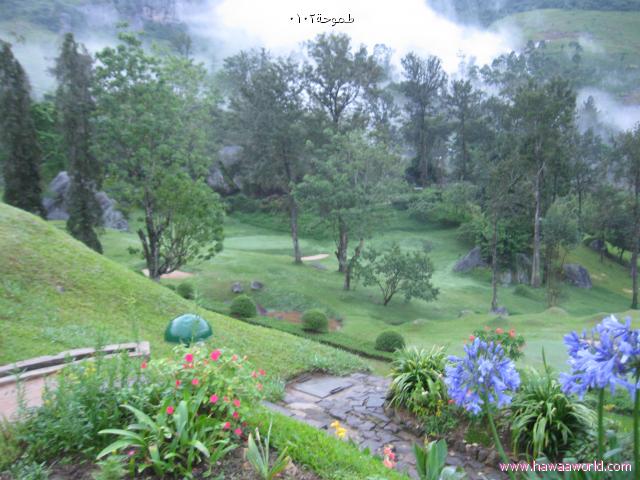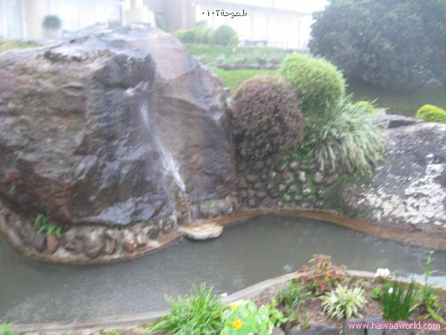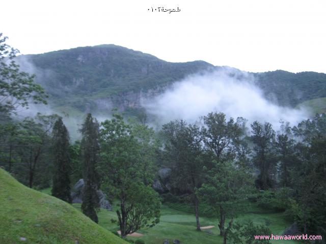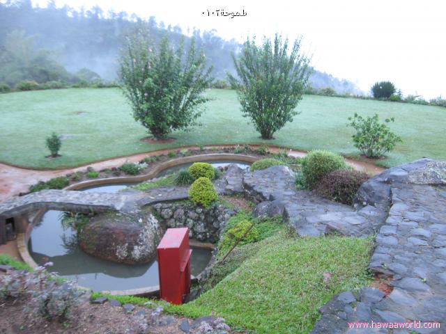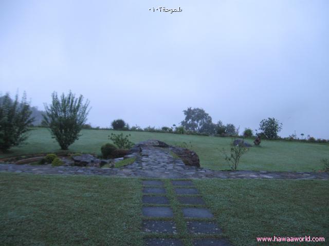 بعدين افطرنا وطلعنا على الشرفه وجلسنا نتمشى في الحديقة اللي عندنا ونصور والضباب مغطي الجو ..عشان كذا ماخرجنا جلسنا في الغرفة الى الساعه12الظهر وصار الجو روعه الضباب انقشع وقمت ولبست اولادي ملابس صوفية وانا كان على بالي الجو بارد لان اليوم كله امطار ونزلنا على الحديقه والشلال.....