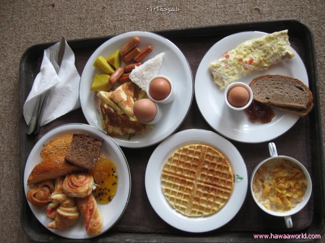 قلنا مشكله لان الاولاد اكلهم لقمتين وبس قلنا ليش ندفع وهم ماراح ياكلون خصوصا انه فطور مو غدا اوعشا فقال زوجي انا بنزل البوفيه واختار اصناف حقت شخصين و حسألهم اذا بيطلعون فطورنا الغرفه......الحمدلله معانا توست ومربى وجبنه وحلاوة طحينيه وعصيرات .........