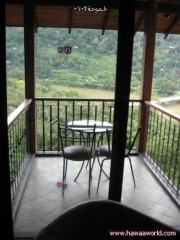 الغرفه كانت تجنن وفخمه وواسعه قلت لزوجي بسرعه صور قبل مايعفسونها الاولاد وكان مطل الغرفة شئ خيال طبعا احلى حاجه ان غرفتنا في الدور الاخير وفي اخر الممر يعني محد يضايقنا في الشرفه طبعا الغرفه تطل على النهر .......... وطبعا نشوف الجبال والطريق وحركة الناس......وهذي الصور