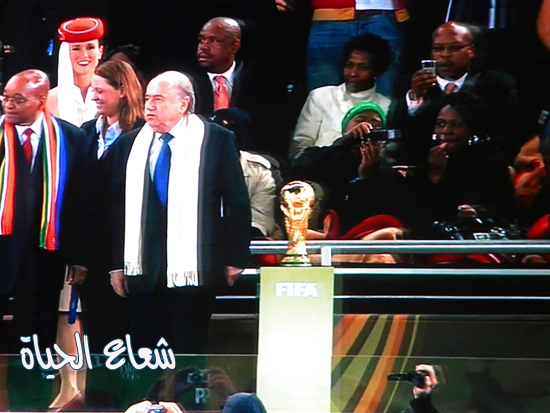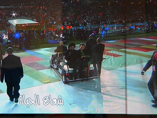 وصولنا كان على بداية الحفل الختامي ودخول مانديلا وحرمه المصون ههههه لأرض الملعب