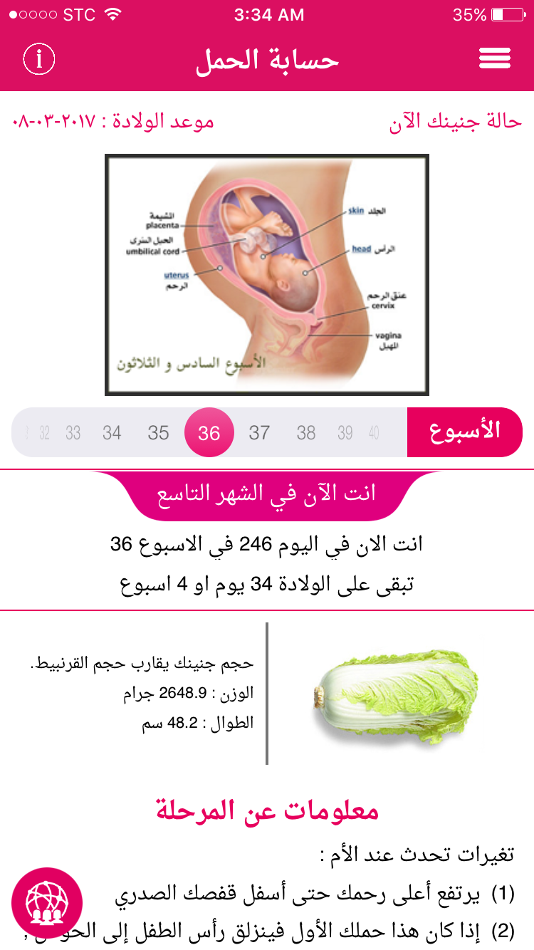 ايوه يعطيك نفس تاريخ الولاده بس بيبي سنتر يحسب لك من تاريخ حدوث الحمل وحاسبه الحمل من قبله بأسبوع وكلها تنتهي بتاريخ واحد عادي حبيبتي انبسطي خلاص بدأت الثامن