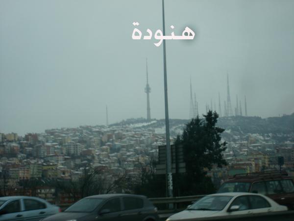 الثلج ينزل بس خفيف مو مبين بالصورة..