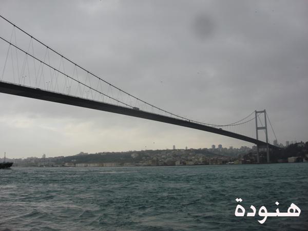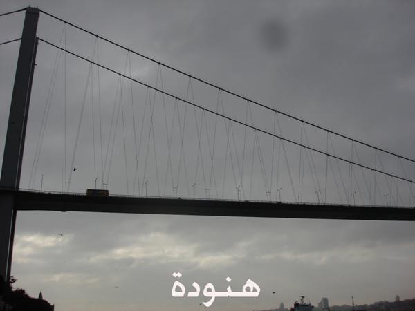 الحين بنعبر الجسر الطويل العملاق الي كنا نمر تحته واحنا في البحر