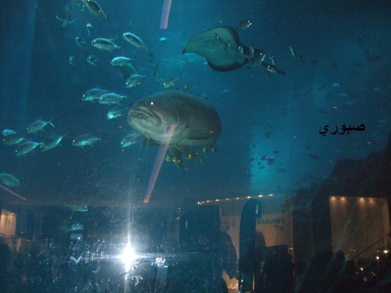 مشكورة يا أخوات على متابعتكم... والله شجعتوني على اني أكمل أول يوم طبعا كنا تعبانيين كنا صاحيين من بدري واللي منهم مواصل، ففضلنا البقاء في البيت ونمنا الساعة 9 بلليل وصحيت انا وبناتي قبل الفجر ، وعلى آذان الفجر صحي أبونا وصلينا الفجر وجلسنا اليين الساعة 8 وفطرنا و على الساعة 10 أستعدو بناتي للنوم وقلتلهم خير! ما تبغوا تخرجو قالو ننام شوية وبعدين نخرج وافقتهم لأني بصراحة كنت نعسانة أنا ايضا :42: وأخذتنا النومة ما صحينا إلا الوقت المتأخر ، وبصراحة كنا مخططين نروح لمول إمارات لسكي دبي ولكن لما شفنا الوقت تأخر قلنا خلاص نروح لأكواريوم حق الأسماك في دبي مول و بعد قطع التذاكر دخلنا . صورة من الخارج وهذي من فوق وأنا طالعة على الدرج وهذي من الداخل بصراحة أنا صورت صور كثيرة بس بكميرة الفديو لأن كانت حركة أسماك القرش روعة وبنفس الوقت مخيفة أول مرة أشوف سمكة القرش فوق رأسي فاتحة فمها في هذي اللحظة فكرت في نفسي لو أنكسر القزاز اللي بيني وبينها إيش راح تسوي يا شاطرة طبعا أشيل الصندلي الله يكرمكم وفريرة :42: خروجنا من أكواريوم وإتجاهنا إلى الحديقة المائية في دور الثاني المكان هذا مرررة روعة وبااارد كأنك في غابة صغيرة وكل الحيوانات مائية وأحواض كبيييرة مكشوفة ومكتوب عليه ممنوع وضع اليد وفعلا مافي أحد يتجرأ ويعبث بالماء.. شعب راقي ما شاء الله حتى الأجانب والهنود راقيين عندهم يتبعمشكورة يا أخوات على متابعتكم... والله شجعتوني على اني أكمل أول يوم طبعا كنا تعبانيين كنا صاحيين...