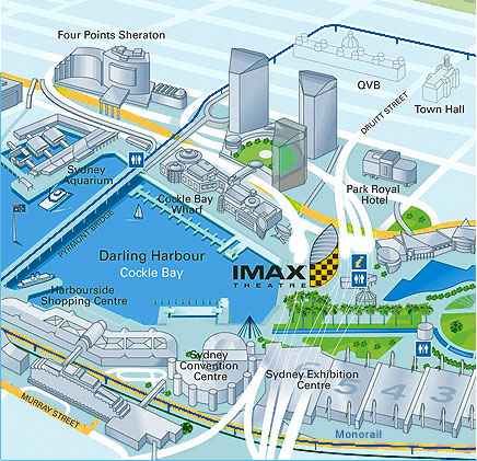 هنا ماب توضح موقع IMAX بالنسبة للسيدني هاربر