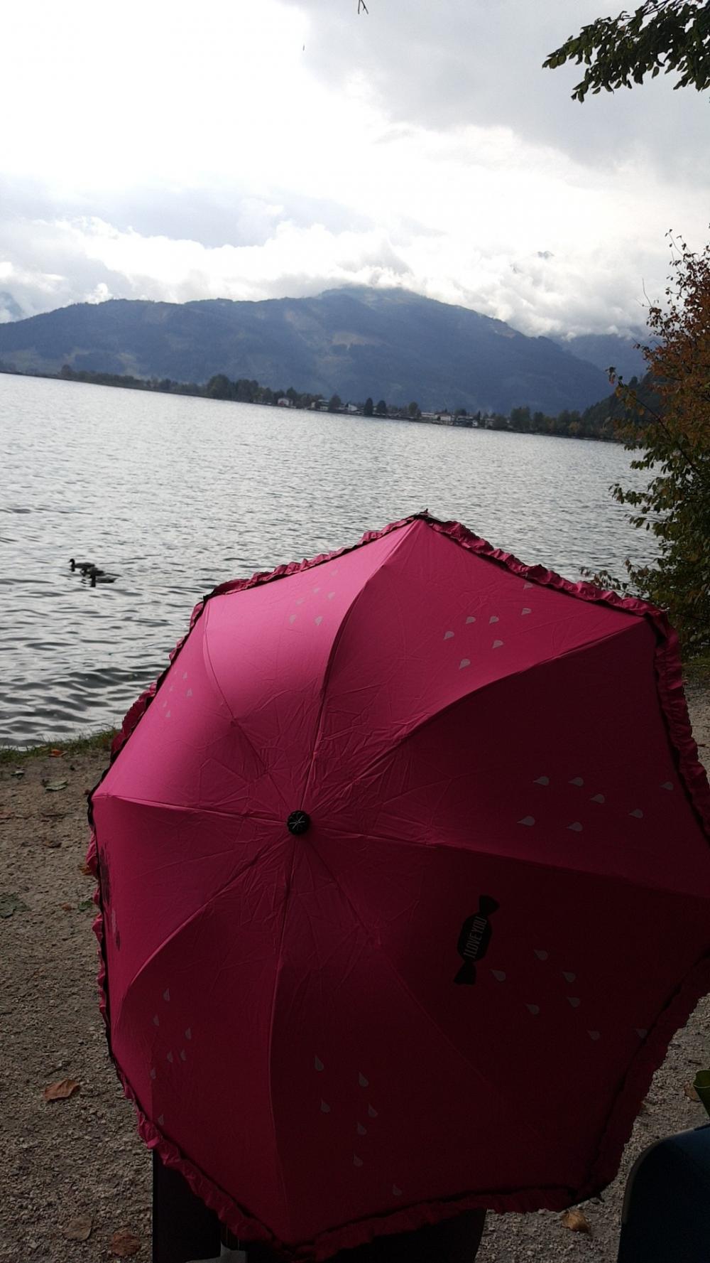تصدقون كل سفرتنا ماامطرت بس بيوم رشت رش بسيط الا والعالم كلهم يطلعون مظلاتهم اشوفهم مع الشباك واركض على شنطتي واحط المظلة معي الرحلتنا البحيرة زيلامسي .. الاخ الفاضل جلس يهاوش تستهبلين مافيه مطر ..قلت الا فيه شف الناس طلعوا مظلاتهم ..حنا نغرق من المطر ماشاء الله ومانعرف شي اسمه مظله.. الزبدة اني طلعت مظلتي الكيوت ولله الحمد ☂️