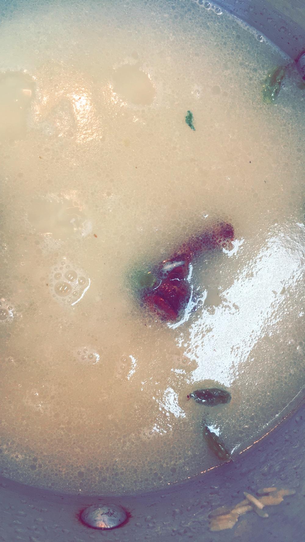 نضع بعدين البندوره والبن والبهارات ونخليه ع ناار هاادئه