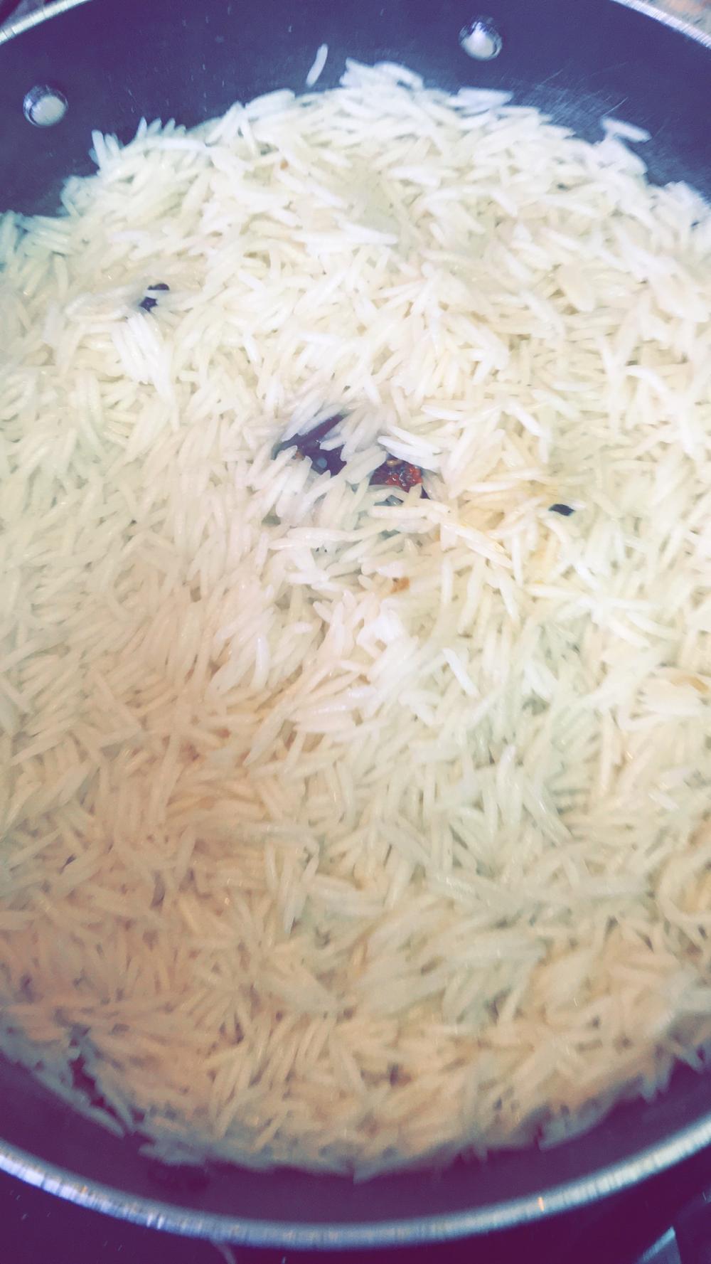 بقدر ثااني نحط زيت والبهارات الصحيحه والرز ومويه ونسلقه نص سلقه