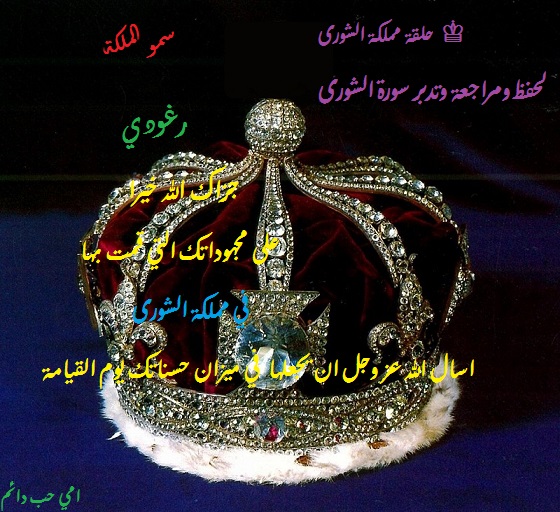 السلام عليكم...كيف الحال حبيباتي....اشتقت لكم كثيرا جدا....عسى السعاده دربكم دايم الدوووام... مع البيت الجديد...ودوامي الصباحي بالدار انشغلت عنكم كثيرا.....وهاانا انظم اليكم من جديد دندونتي...كيفك....وكيف الحلقه...ربي لايحرمنا منك يالغلا ابشرك راجعت في الدار من سوره البقره الى الحجر ولله ااحمد...وهاانا اراجع الان بالعطله انجازي...حفظ سوره البقره وال عمران...والفرقان والنور والمؤمنونالسلام عليكم...كيف الحال حبيباتي....اشتقت لكم كثيرا جدا....عسى السعاده دربكم دايم الدوووام... مع...