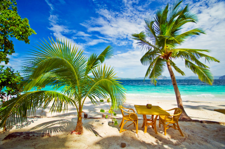 الإستمتاع من الهواء الطلق على شاطئ النخيل