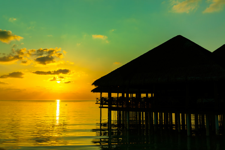 5. أشعّة شمس الغروب كما تبدو من الغرفة الفندقية القائمة فوق مياه المحيط