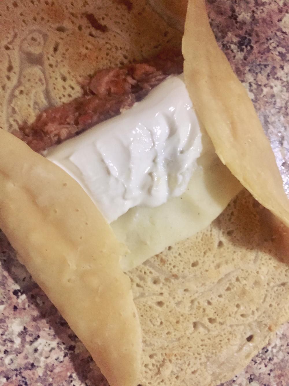 وضعت الرقائق على سطح مستوي وأضفت لها الحشو