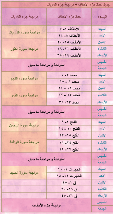 سوف نتابع حفظنا بنفس الجداول السابقة....