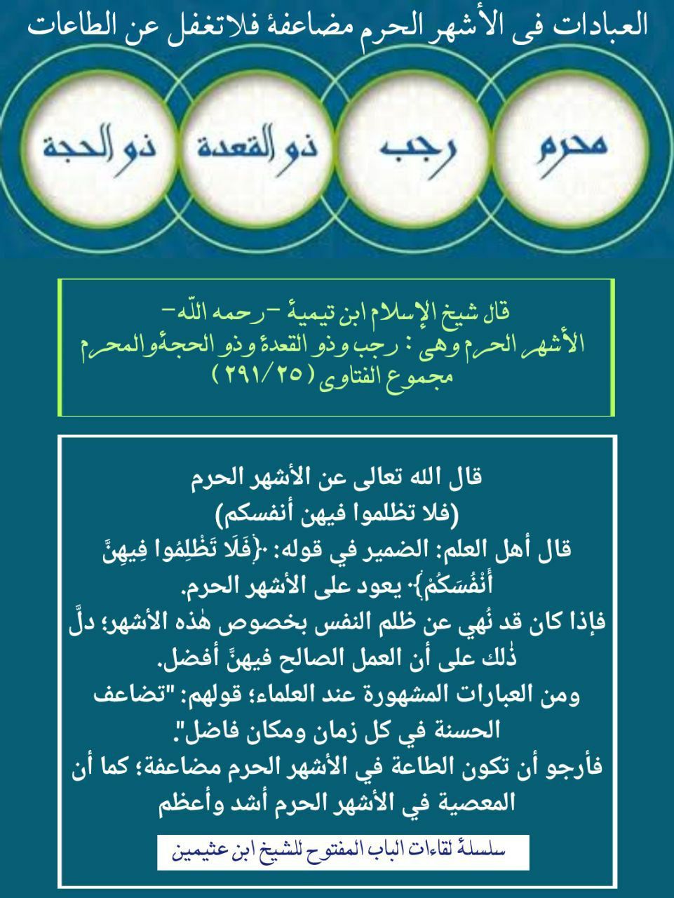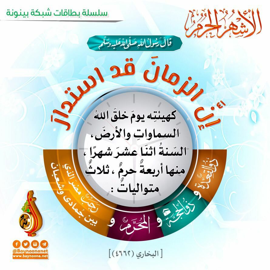 " الأشهر الحرم كما سمعتم هي: ذو القعدة وذو الحجة والمحرم عاشوراء،