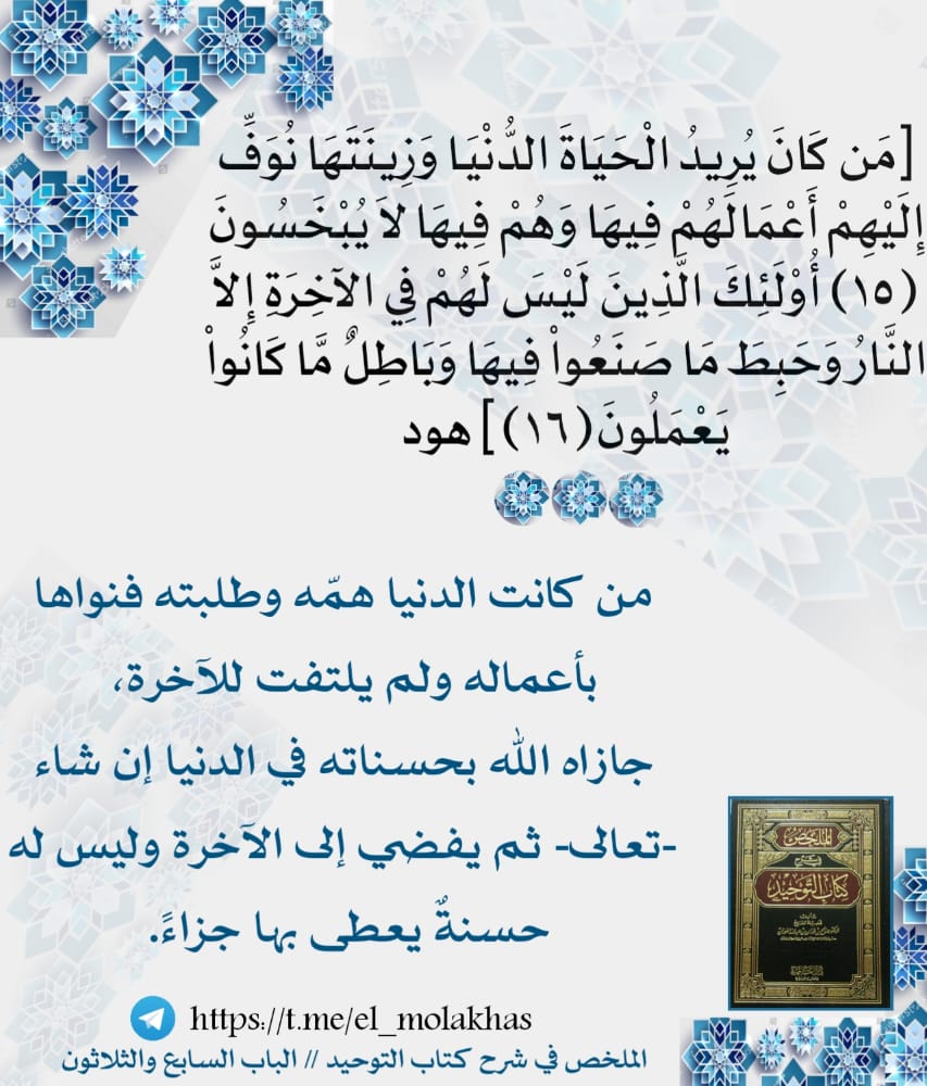 🌿وعَن النَّبِيِّ صلى الله عليه وسلم قَالَ: «إِنَّ اللَّهَ كَتَبَ كِتَابًا قَبْلَ أَنْ يَخْلُقَ السَّمَوَاتِ وَالأَرْضَ بِأَلْفَيْ عَامٍ، أَنْزَلَ مِنْهُ آيَتَيْنِ خَتَمَ بِهِمَا سُورَةَ الْبَقَرَةِ، وَلاَ يُقْرَآنِ فِي دَارٍ ثَلاَثَ لَيَالٍ فَيَقْرَبُهَا شَيْطَانٌ». رواه الترمذي وصححه الألباني.