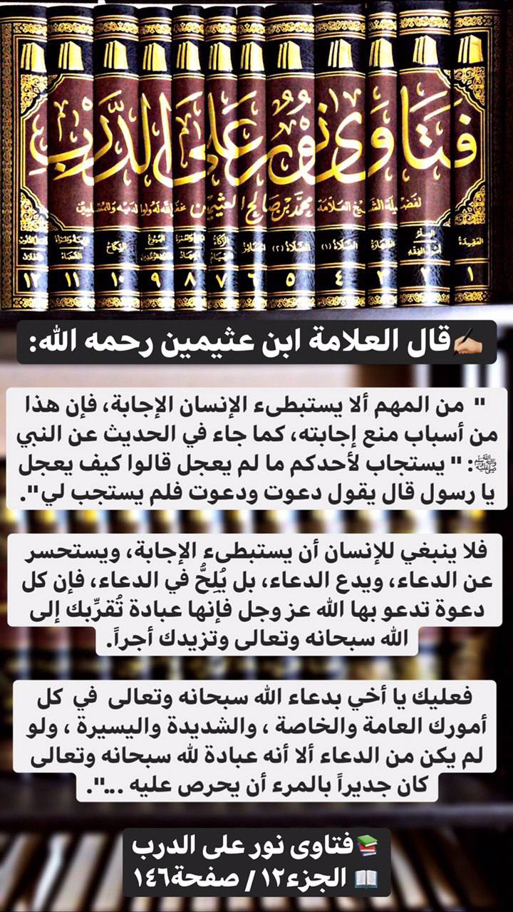 ويستحسر عن الدعاء، ويدع الدعاء، بل يُلِحُّ في الدعاء، فإن كل دعوة تدعو بها الله عز وجل فإنها عبادة تُقرِّبك إلى الله سبحانه وتعالى وتزيدك أجراً.