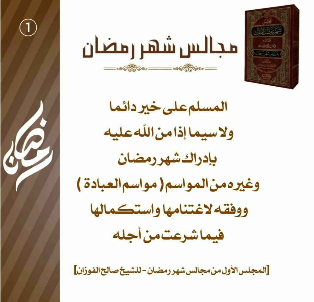 ▪والمقصود : أنّ المسلم يحفظ نفسه ويجاهدها على محاب الله ومراضيه ومجانبة مساخطه ومغاضبه، ويشغل وقته فيما هو أنفع له في دينه ودنياه، هذا هو الواجب على كل مسلم ومسلمة، وأن يغتنم هذا الشهر فيحرص فيه على تلاوة كتاب الله، وعلى الاستكثار من نوافل العبادات، من صلاة وصدقة ويصل رحمه ويعود المريض،