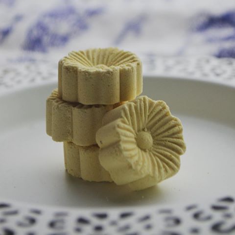 كاسين دقيق حمص جديد مطحون +كاس دقيق ابيض +كاس سكر مطحون للي يحبوها حاليه والي تبيها اقل تنقص السكر +سمن فارم او مازولا بالزبده للعجن.لازم يكون دقيق الحمص جديد مطحون عشان مايطلع طعمها مر.................