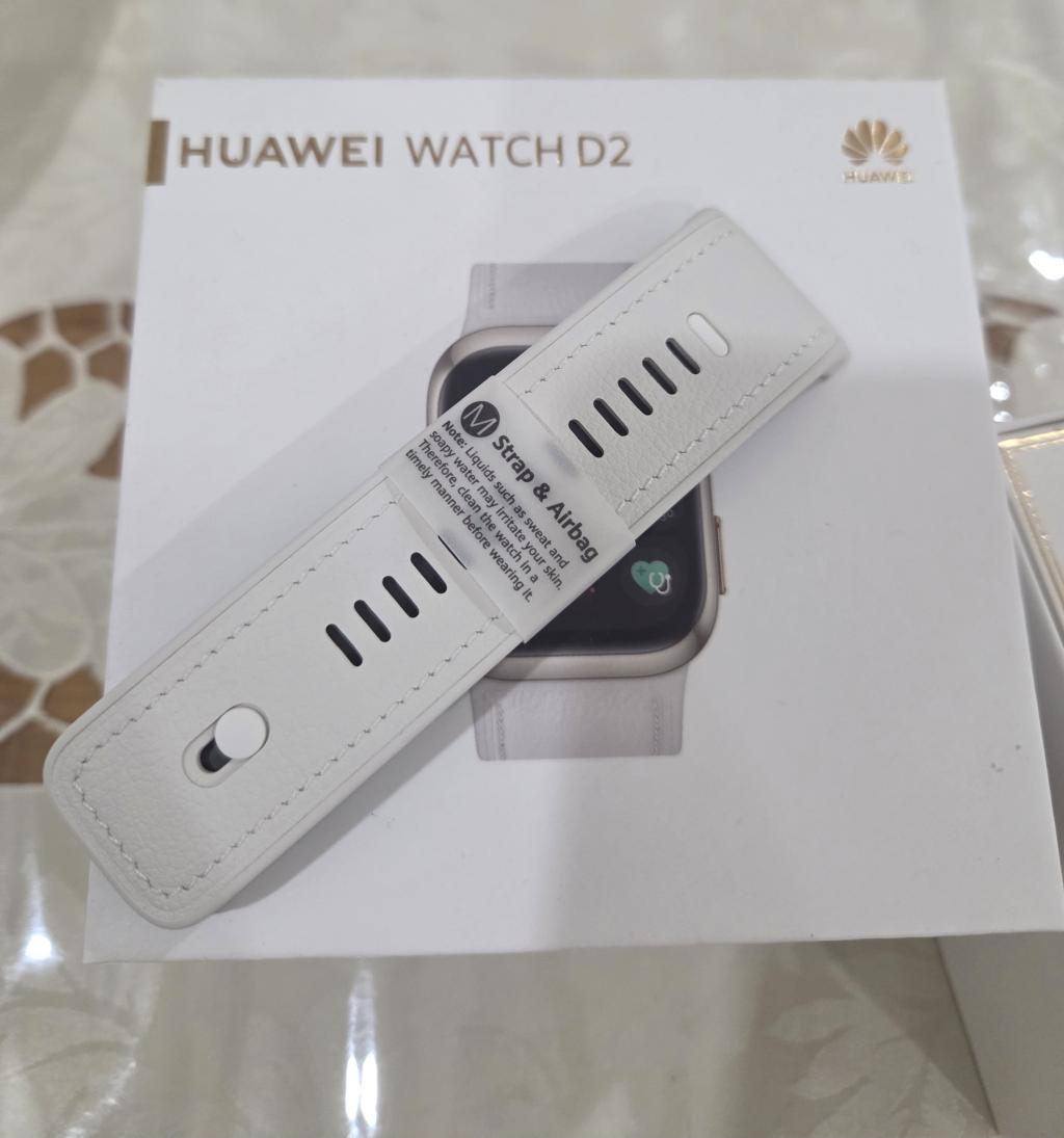 ساعة هواوي الذكية D2 , الاصدار الوحيد اللي يقيس الضغط ، حزام الساعة مزود بوسادات هوائية لقياس الضغط و تعمل يالضبط مثل جهاز قياس الضغط ، يجي معاها سير اضافي و الشاحن ، جديدة تماما ما زالت بالاستيكرات , حزام ساعة جلد مضغوط ، مواصفات عالية خاصة باللياقة و نشاط القلب و تخطيط القلب و النشاط الجسدي و متابعة جودة النوم و مواصفات اخرى ، مدفوع ضمان شهرين ضد الكسر ، متوفر الفاتورة الالكترونية .