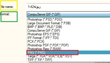 المربع الاحمر هنا جميع صيغ الصوره ومنهاPNG